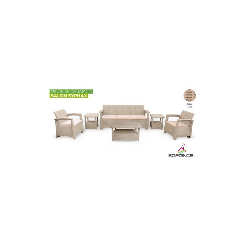 Salon de jardin Modèle Syphax , 5 places , 2 Fauteuil 1 place , 1 Divan 3 places 1 Table Syphax , 2 Tables de coin, Couleur Grège
