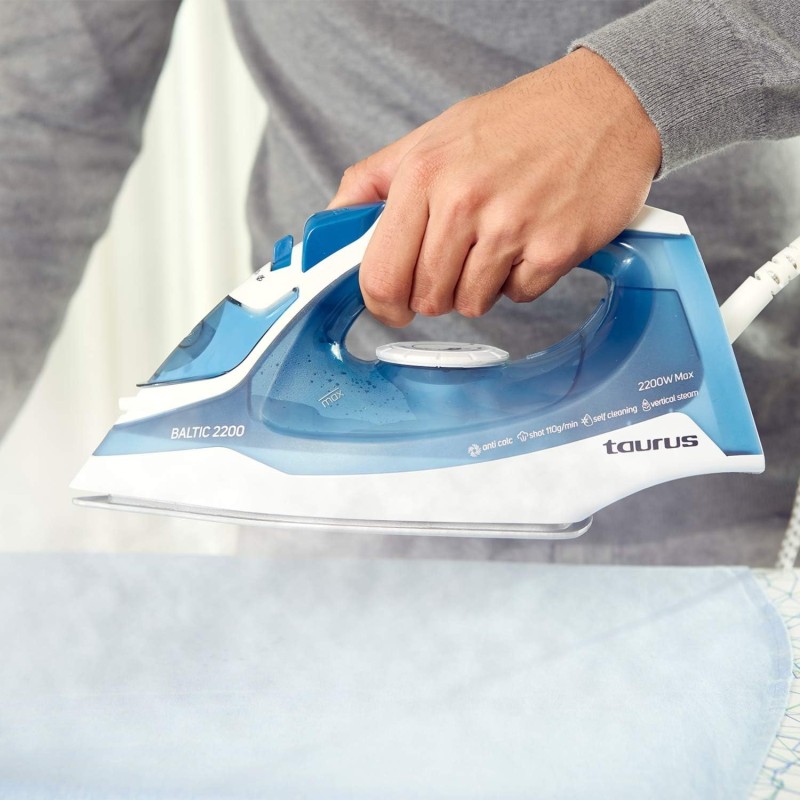 Fer à repasser, Jet de vapeur 110gr/mn , Vapeur continue 0-30gr/mn, Repassage Vertical, Système Anti-calcaire , Autonettoyant, 2200w, Semelle silver (argentée) qui Permet une glisse optimale pour un repassage léger. avec pointe de précision