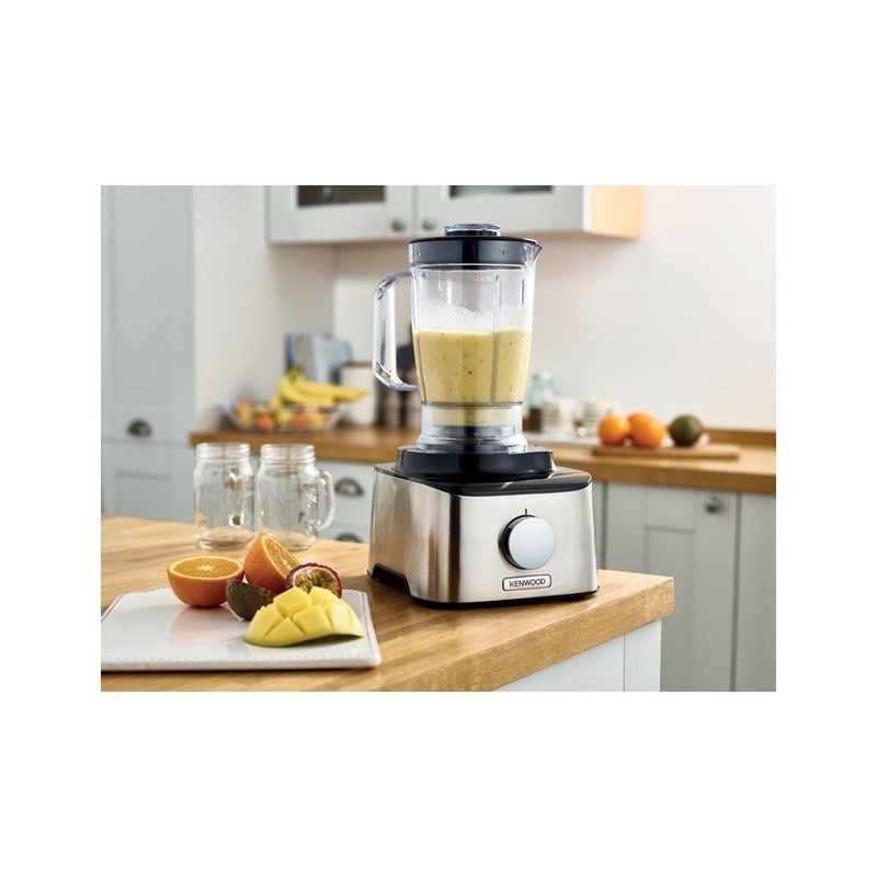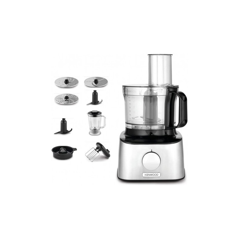 Robot mutifonctions , Blender 1.2L , Capacité du Bol 2.1 L, 2 vitesses +Pulse , presse-agrumes, 3 disques pour râper émincer, fouet, pétrin , 800W , Inox .