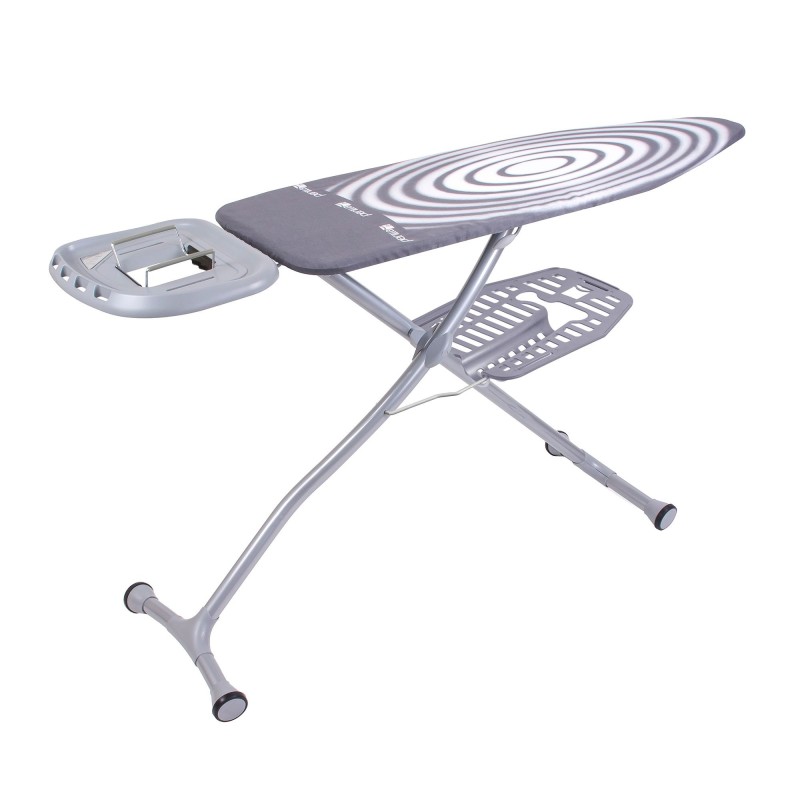 Table de repassage avec panier de rangement , Tissu résistant à la chaleur ,Plaque en tole perforée perméable à la vapeur , Réglage de la hauteur , anti-dérapant , Dimensions 45*125cm, Revetement en poudre Epoxy électrostatique , Hauteur 90cm,