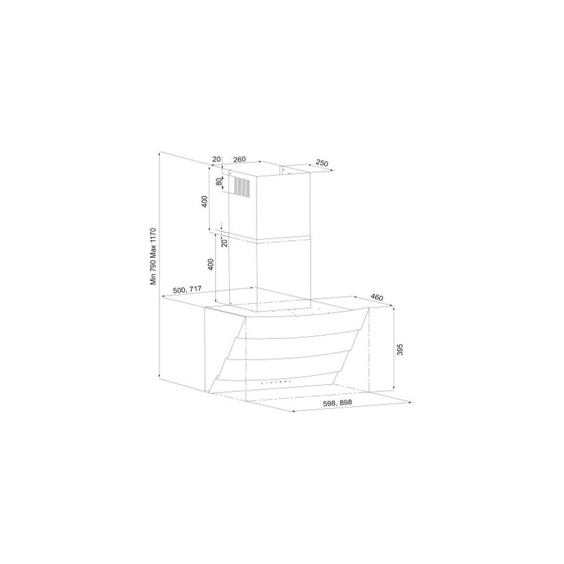 Hotte cheminée inclinée , Débit max 772 m³/h, Minuterie , 5 Vitesses , Classe énergétique A, 60cm , Noir