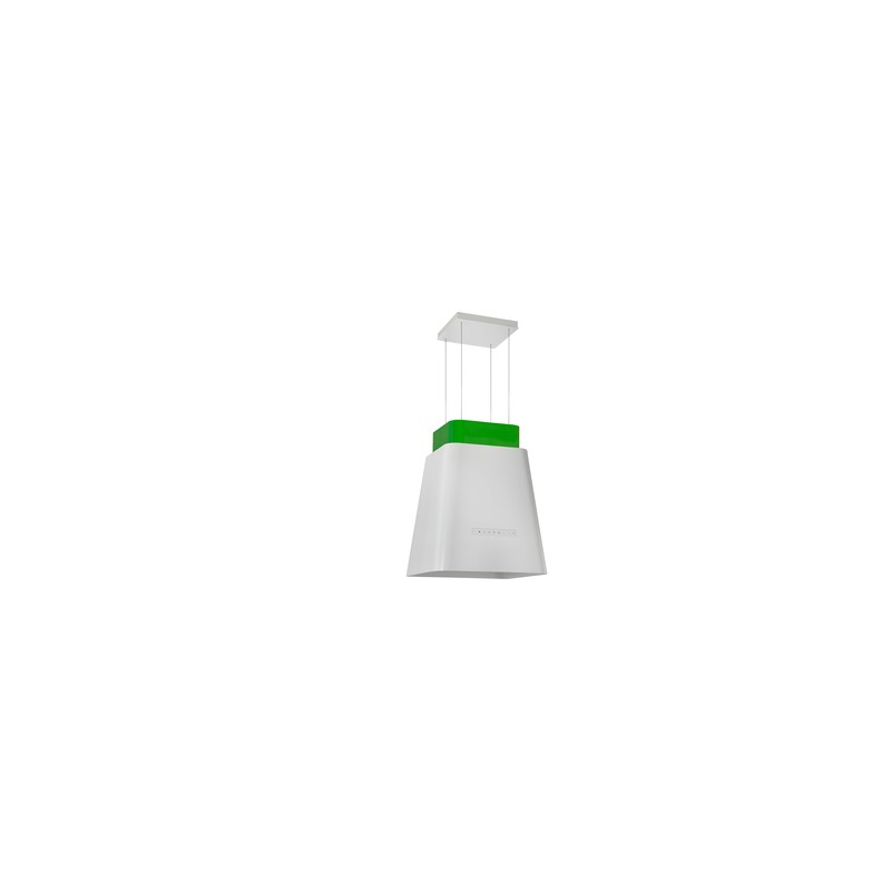 Hotte Centrale Suspendus, Débit d'air 765 m3/h, 2 vitesses, Filtre en acier inoxydable + filtre à charbon, Eclairage LED, Touche Contrôle, Classe énergétique A, 50cm, Blanc et Vert