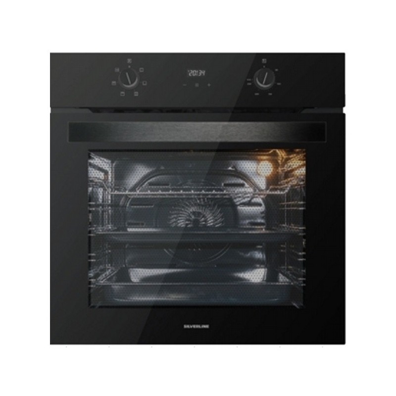 Four électrique encastrable, 6 programmes , Chaleur tournante , Ventilateur Turbo, Gril, Afficheur numérique, Autonettoyant , Ventilateur de refroidissement , Porte avec double Vitrage, Porte Froide , Minuterie électronique , 2 plateaux+Grille , classe énergitique A , 60cm, Noir