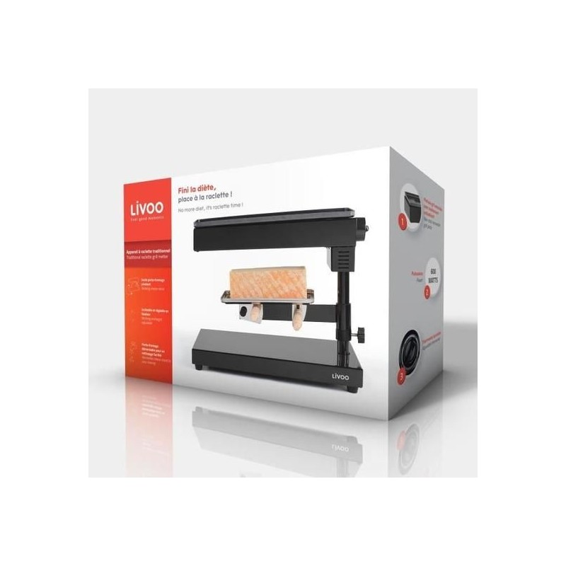 Appareil à raclette traditionnel, Poignés en bois , Socle Porte fromage pivotant&Démontable , Thermostat réglable 240° , 2 spatules à raclette incluses, 600W
