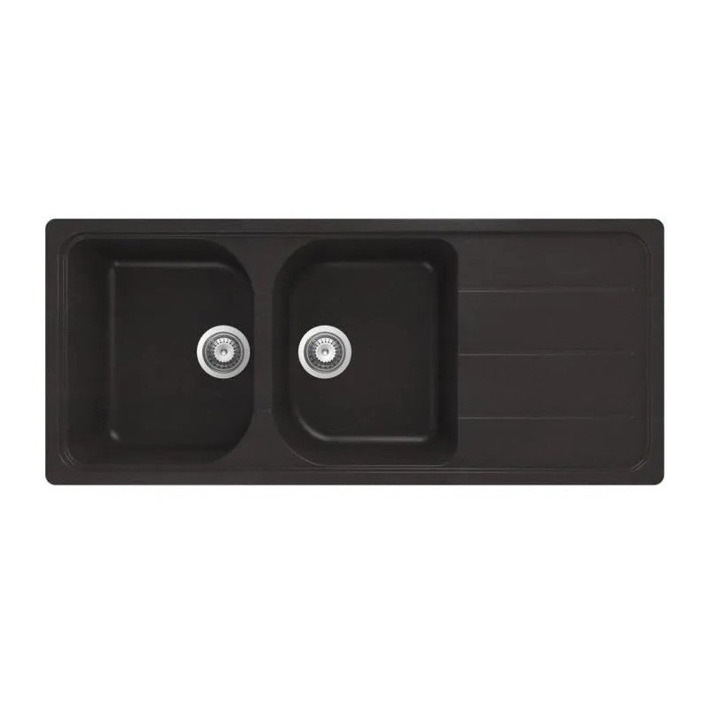 Évier à 2 bacs avec égouttoir, Dimensions 116 X 50 cm, Noir