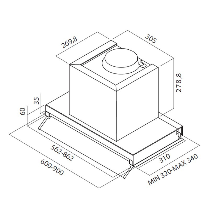 Hotte Encastrable 90cm , 850 m3/h , 3 vitesses , Eclairage LED , Filtre aluminium lavable , Inox