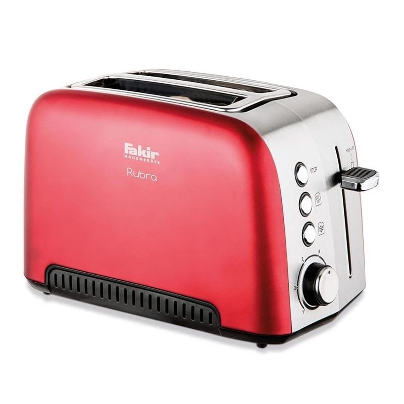 Grill pain avec 2 fentes, Tiroir pour les miettes, Température réglable, Ejection automatique, 980W, Rouge