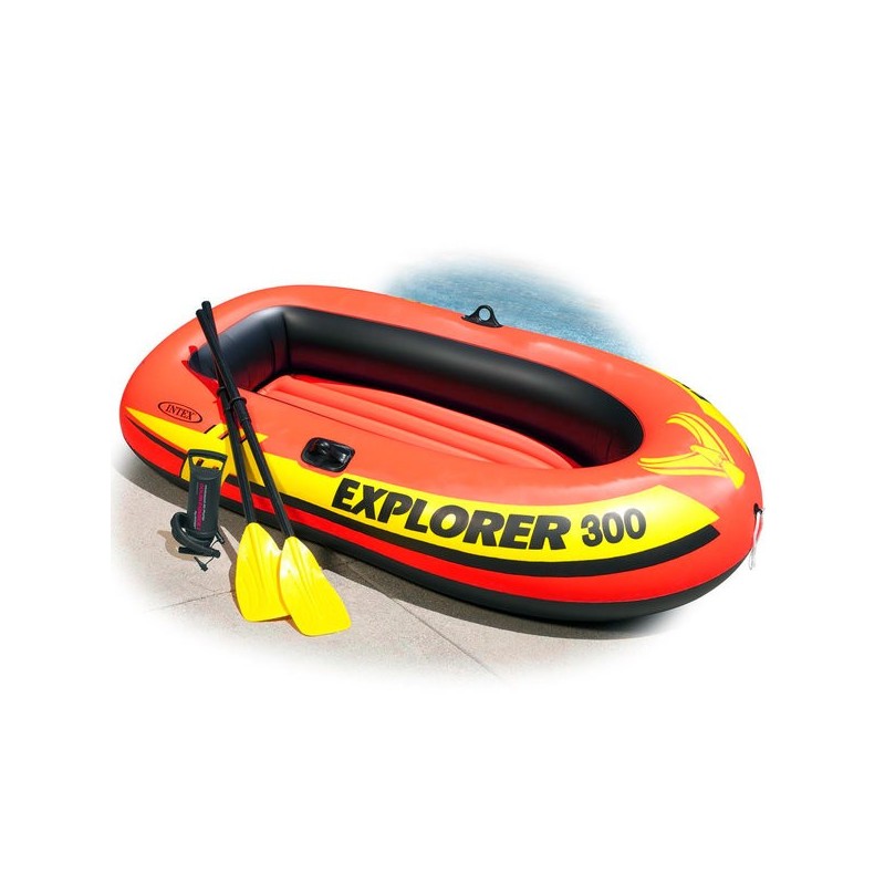 Bateau gonflable avec accessoires Intex Explorer poid max 186 Kg,1 canot, 1 pompe à air, 1 paire de rames, Âge+6 ans.