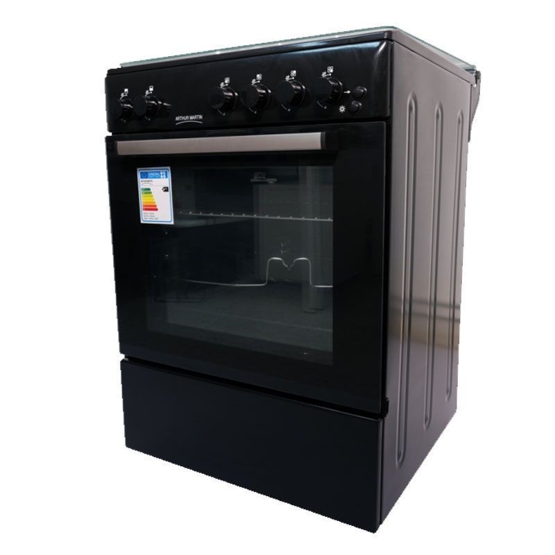 Cuisinière 4 feux, Grilles & Couronnes mattes, Sécurité thermocouple, Chaleur tournante , Tourne broche, Allumage automatique, 60 cm, Noir