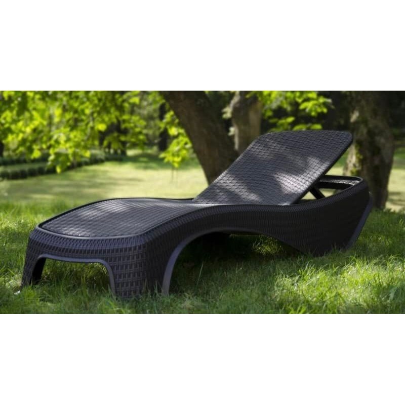 Transat Structure en résine , Effet rotin résistant, Dossier inclinable 5 positions, Dimensions 197 x 74 h36 cm , Avec matelas