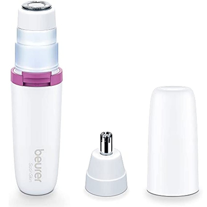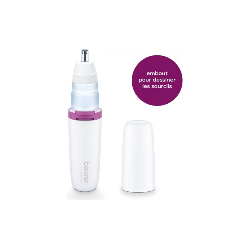 Mini rasoir de visage, Satin Skin, Tête de rasage, Lumière LED extra-brillante ,+ Embout pour les poils du nez/des oreilles/les sourcils + Embout de protection