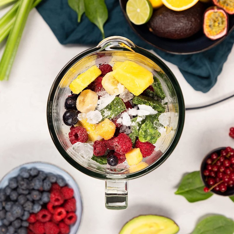 Blender , Bol en verre , Capacité 1.5L , 4 vitesses+Pulse , 6 lames en inox , Fonction Glace Pilée , 1000w, Inox Brossé