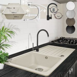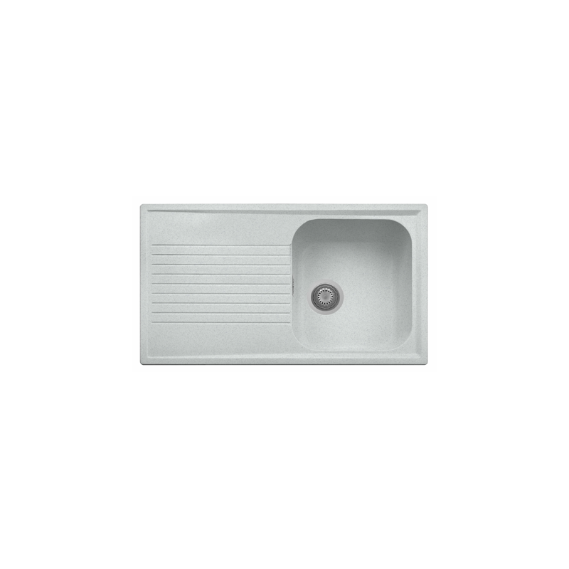 Evier de cuisine , Réversible, en Micro UltraGranit , 1 bac , Dimensions 860*500mm-45cm, Atlantic Blanc Lait avec plage