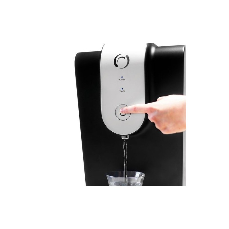 Ce refroidisseur d'eau filtrée compact et élégant se pose sur votre plan de travail pour vous offrir de l'eau filtrée et réfrigérée d'une simple pression sur un bouton.