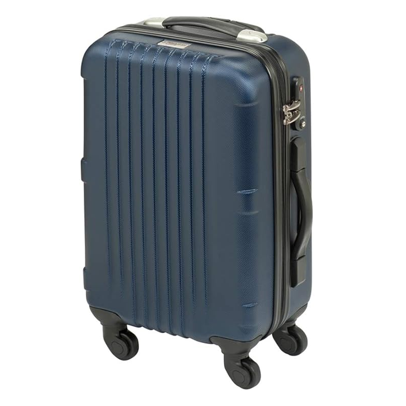 Valise, Capacité 34L, 4 Roues pivotantes à 360°, ABS, Dimensions : 55 X 35 X 20 cm, Peau de requin, Extrêmement Fort, Fermeture à combinaison, Couleur Bleu Marine