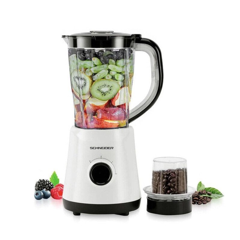 Blender , Capacité Bol 1.5 litre , avec moulin à café & épices , Lame démontable en inox , Bol en plastique , Sécurité de fermeture du bol, Nettoyage facile , 500w Blanc