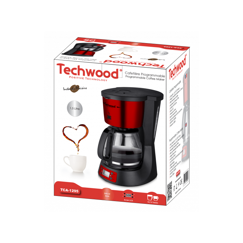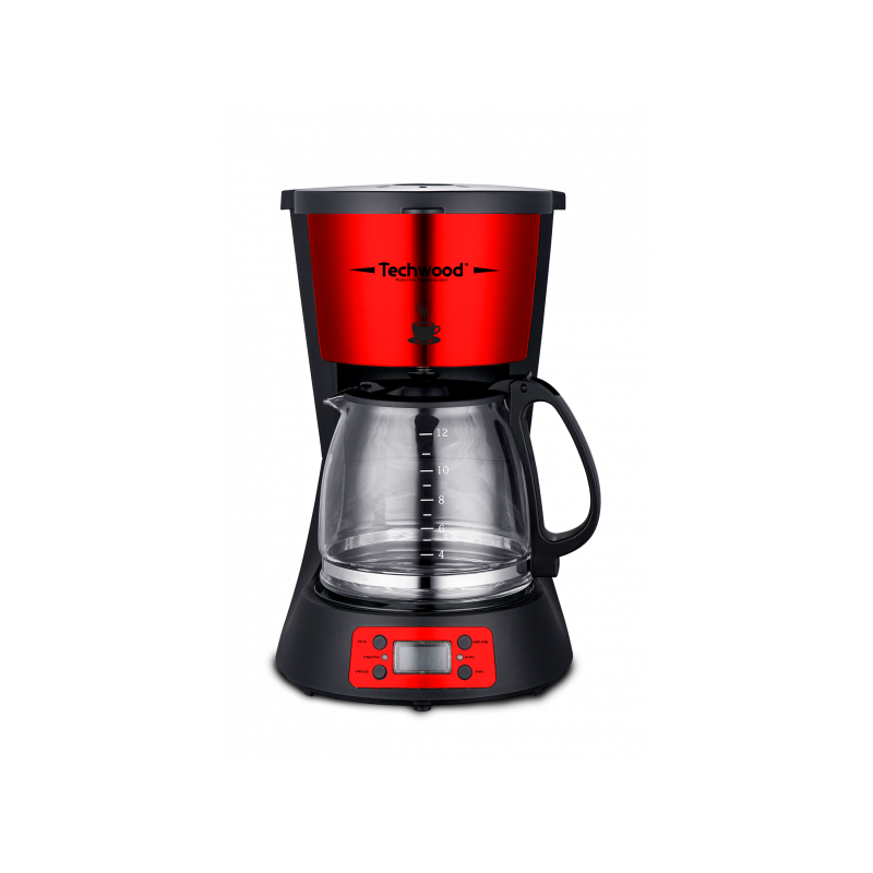 Cafetière électrique programmable, 10-12 tasses, 1.5L, Filtre Permanent Lavable, Système Anti-Goutte, Ecran LCD, Verseuse en verre, Arrêt automatique, 1000W, Rouge