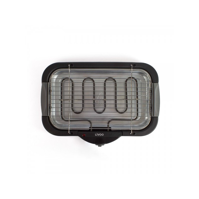 Barbecue de table thermostat, Résistance amovible, Témoins lumineux de fonctionnement, Bac récupérateur de graisses amovibles en aliminum, Grille de cuisson chromée amovible et réglable en hauteur, 4 pieds antidérapants, Entiérement démontable pour un nettoyage facile, Puissance 2000W