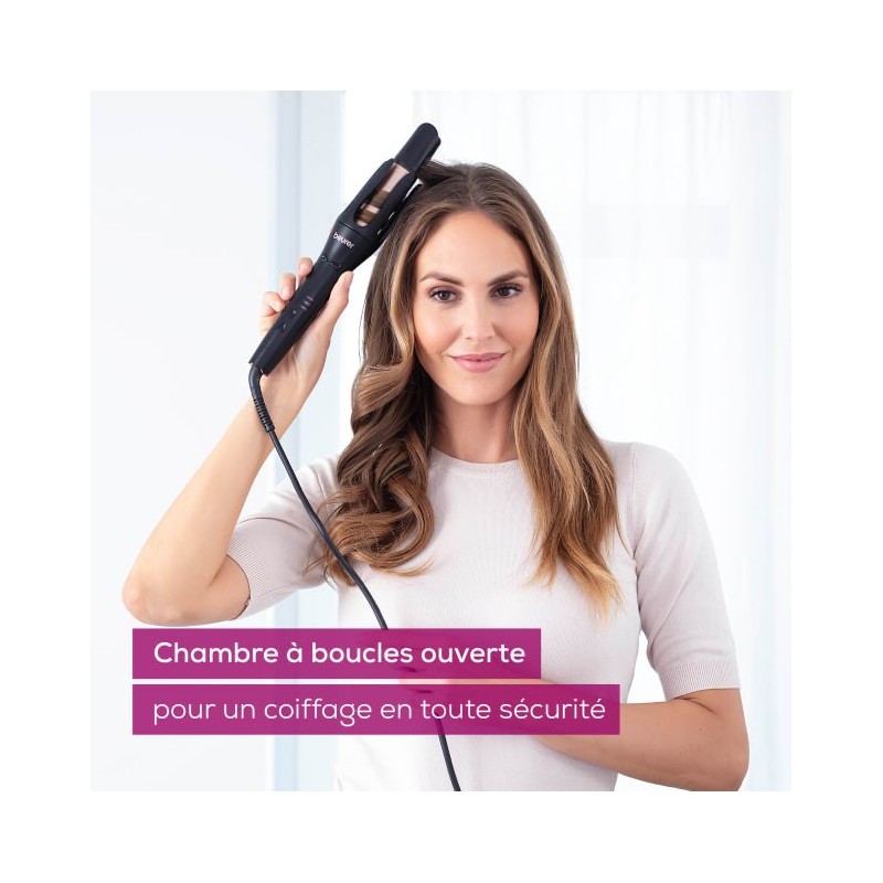 Fer à boucler Automatique , 3 réglages de températures , 170, 190, 210°C, Cylindre en Céramique-Tournaline, Cylindre large 32mm, Lonique, Rotation droite et gauche, Smart Timer – émet un signal sonore lorsque la boucle est prête