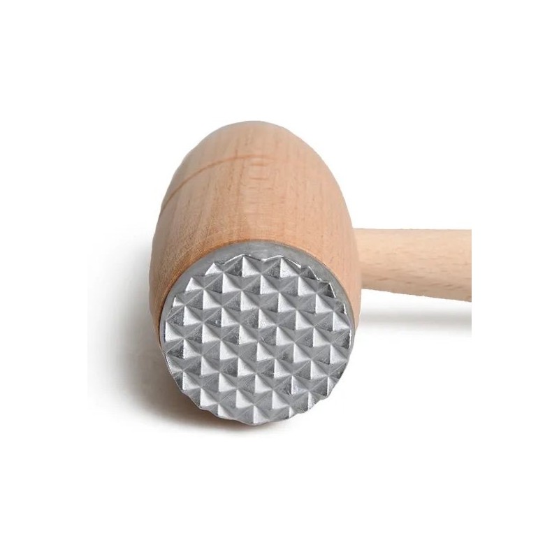 Maillet à viande en bois de hetre avec deux surfacees différentes en aluminum, Avec un marteau à viande