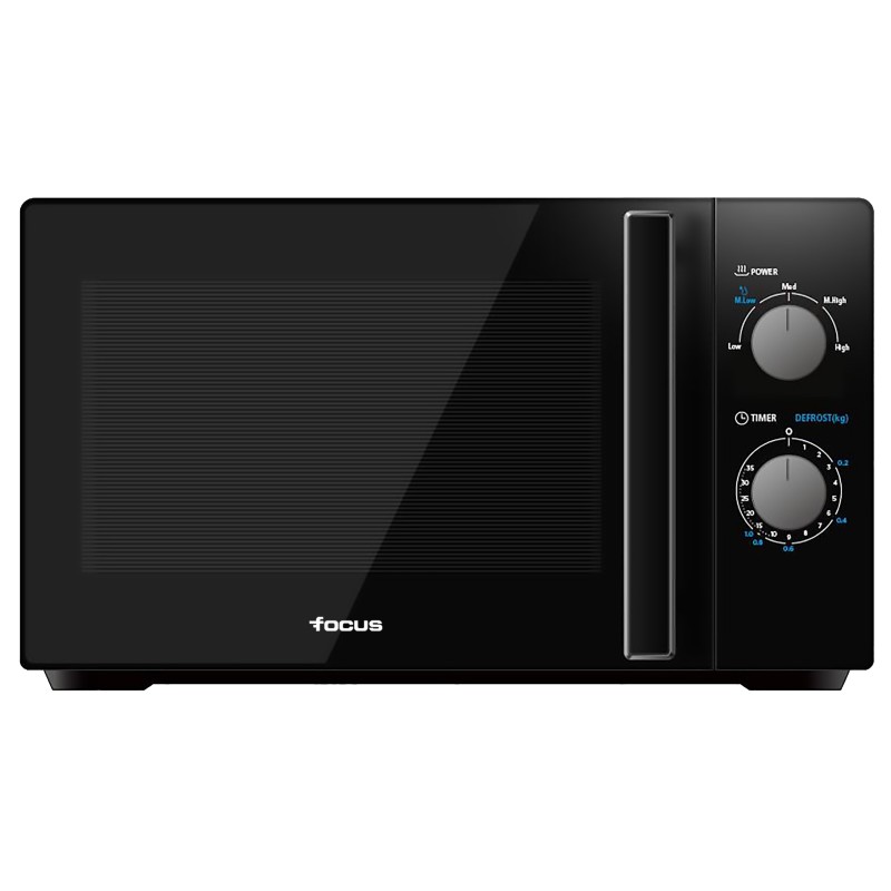 Micro-ondes pose libre , Capacité 20L , Fonction Décongéllation par poids / Temps, Minuteur 35mn, 5 niveaux de puissance, Lampe LED , Grille, Cavité grise facile à nettoyer, Classe A, Noir