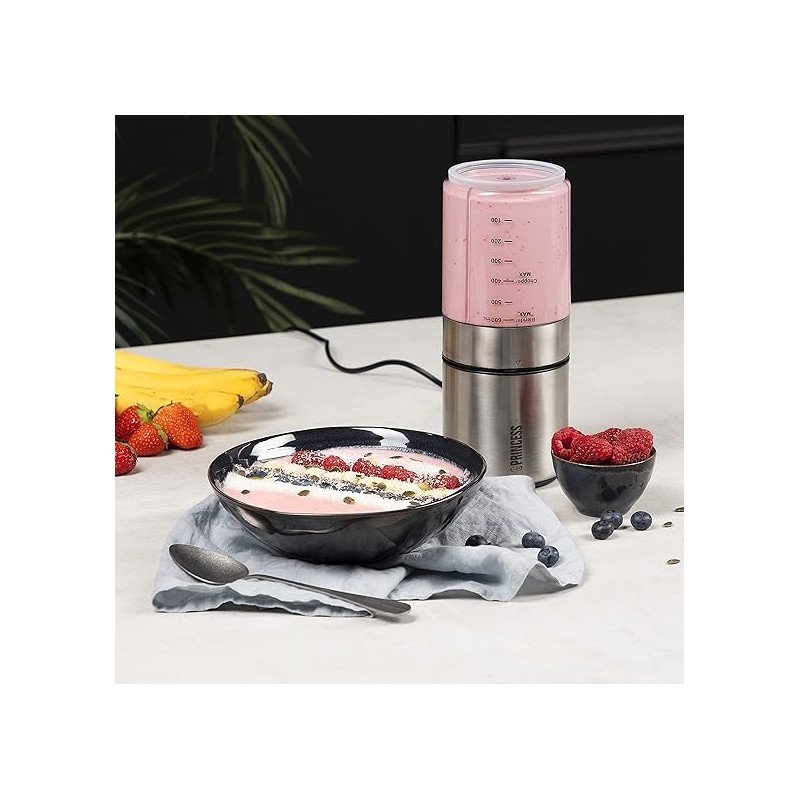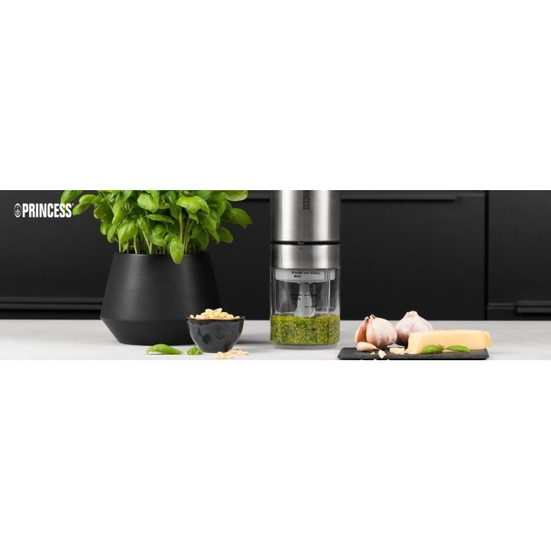Pour toutes vos préparations sauce au pesto verde pour vos spaghettis, smoothie ou milkshake pour le dessert… Vous voici paré pour un repas complet ! Cet appareil Princess multifonction combine un hachoir et un blender pour répondre à toutes vos envies. Assemblez et désassemblez les lames correspondantes selon vos besoins.