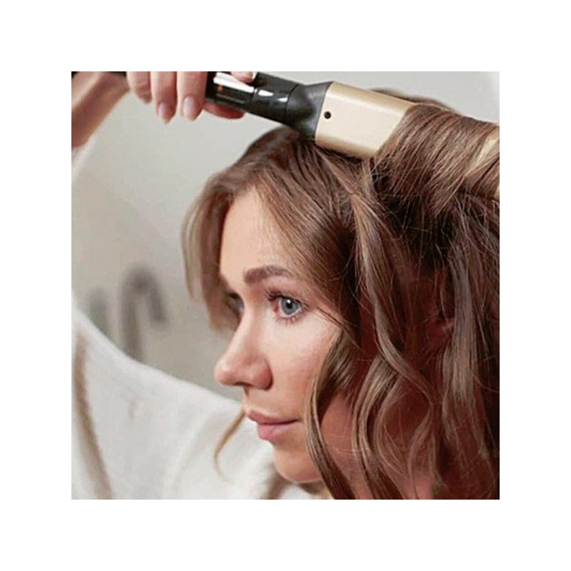 Fer à onduler , Revêtement thermique: Gold Ceramic , 3 Températures , 160°C cheveux fragiles ou fins, 180°C pour cheveux normaux, 200°C pour cheveux épais, Affichage LED, Format Ovale, Un diamètre moyen de 38 mm, Arrêt automatique, Longueur de câble:1.8 m + Tapis isolant: thermo-résistant