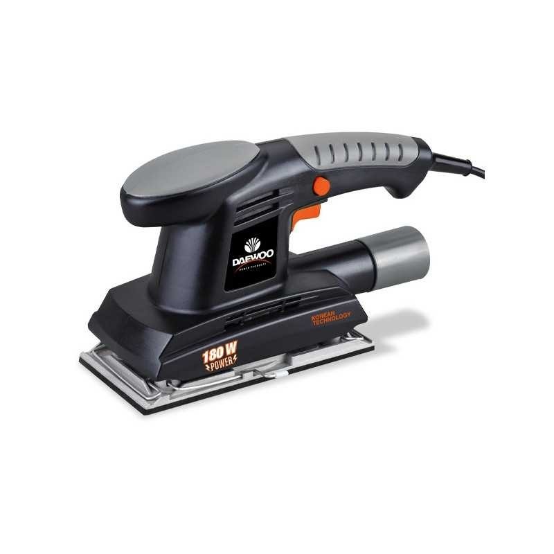 Ponceuse Vibrante DAEWOO DAOS180, Puissance: 180W, vitesse à vide : 11 000 tr/min, Dimension du plateau de support: 90x187mm, Dimension du papier abrasif autocollant: 90x187mm, Dimension du papier abrasif à pince: 90x240mm.