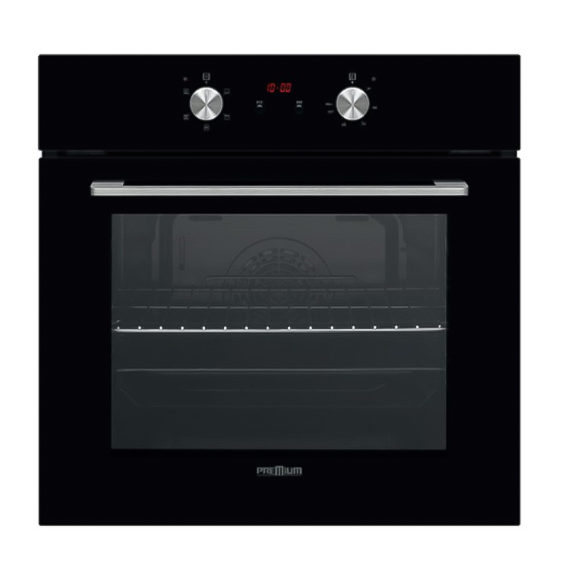 Four électrique , 65L , Chaleur tournante , 6 Programmes, Autonettoyant , Afficheur numérique, Ventilateur de refroidissement, 1 Grille chromé, 1 Plateau émaillée ,60cm , Porte avec double vitrage, Noir