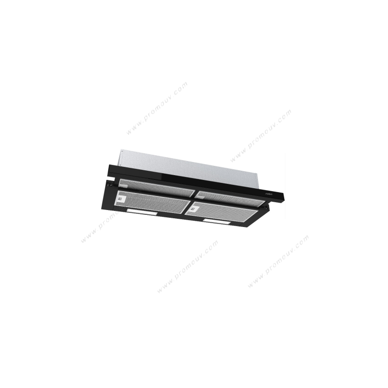 Hotte Tirroir Encastrable, Eclairage Led, 3 vitesses , Débit d'aspiration 650m3/h, controle à bouton, verre noir, 90cm, Noir