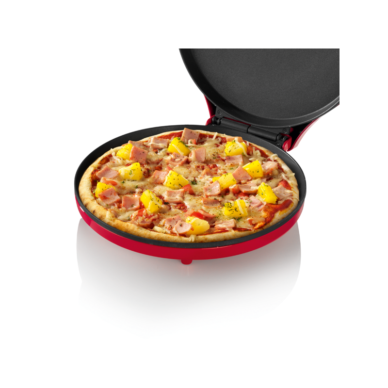 Pizza maker , Cuir en 5 à 8 minutes, Même pour pizza congelée , Thermostat Ajustable , Facile à nettoyer , Revetement antiadhésif , 30cm, Témoin lumineux , Rangement facile ,1450w, Rouge
