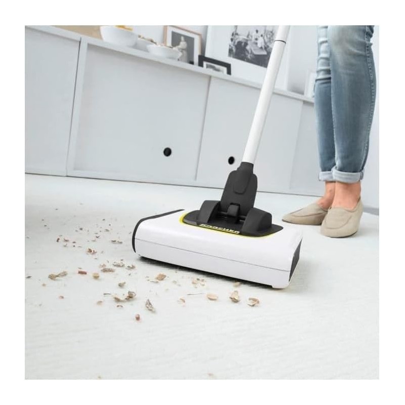 Aspirateur électrique , Balai Sans fil , Rechargeable , Batterie Lithium-ion, Autonomie 30mn , Bac à déchets facile à vider, Volume de la cuve 370ml, Chargeur de batterie, Pour Sol et tapis , Brosse amovible , Double articulation passe même entre les meubles et les chaises, Autonomie 30mn , Bouton de Marche/Arrêt automatique