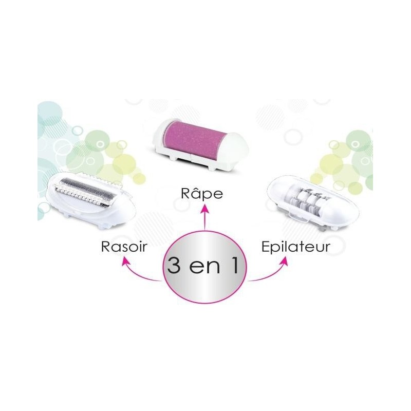 EPILATEUR /RASOIR /RAPE, Lumière éclairant, rouleau rotatif sur 360°, tête épilation+ 1 tête rasoir+1 Brosse de nettoyage, blanc/rose