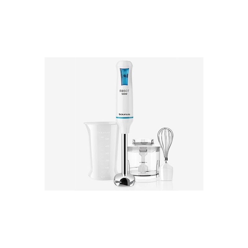 Mixeur Plongeant multifonctions , 3en1, Pied en inox, +Hachoir +Fouet , Bol gradué 500ml , Sans BPA, 600W, Blanc