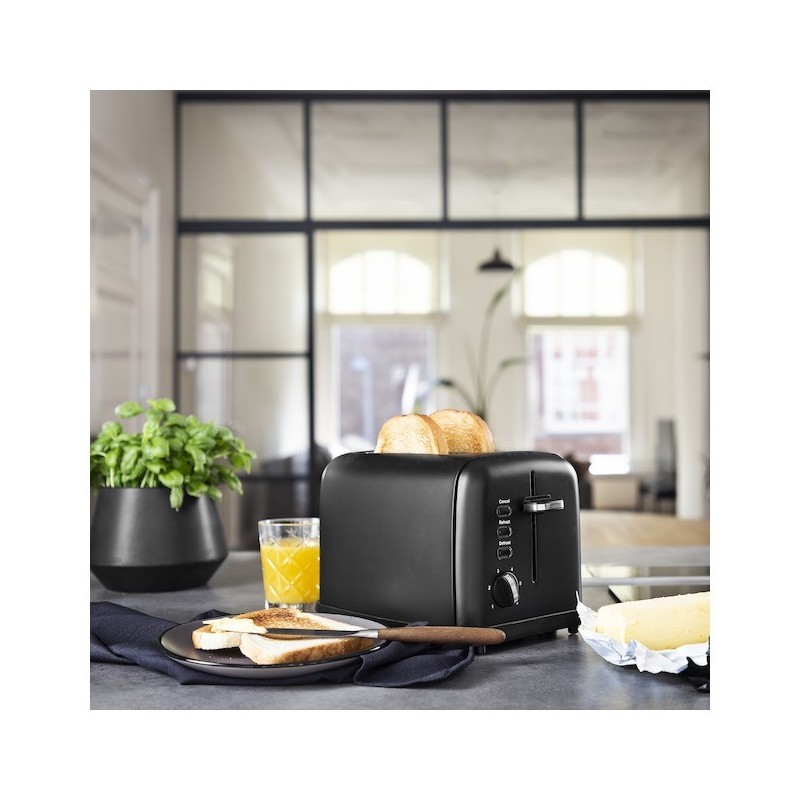 Grille pain , 2 Fentes , Fonction Dégivrage , Fonction Réchauffage, Arret automatique , Ramasse miette , Support pour petits-pain , 950w, Inox Noir (édition limitée )